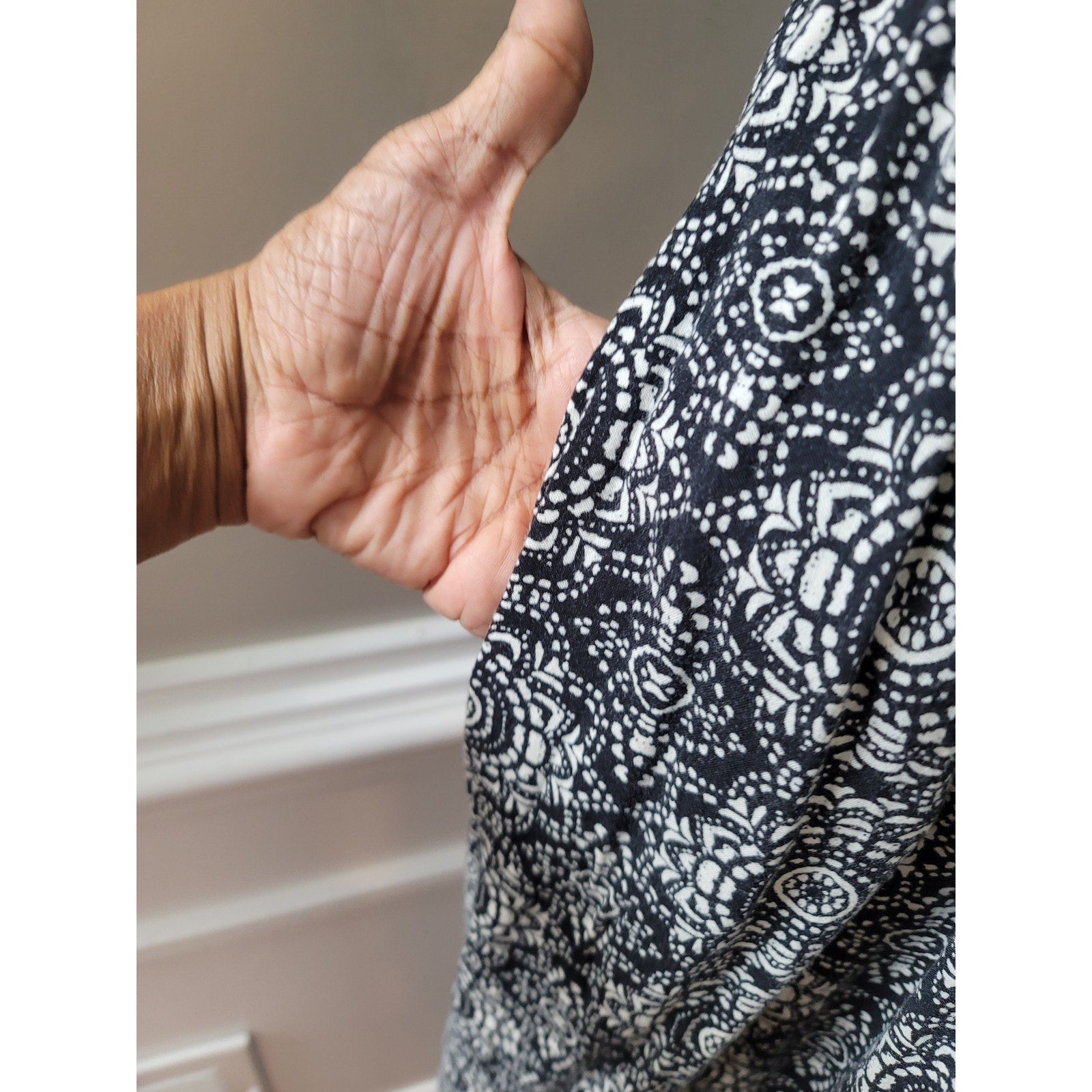 Exhilaration women's maxi dress in size Small. Featuring a black and white boho-inspired medallion pattern, this sleeveless dress has a flattering sweetheart neckline and smocked bodice for a comfortable, figure-enhancing fit. Made from lightweight 100% rayon, perfect for warm weather and casual occasions.
