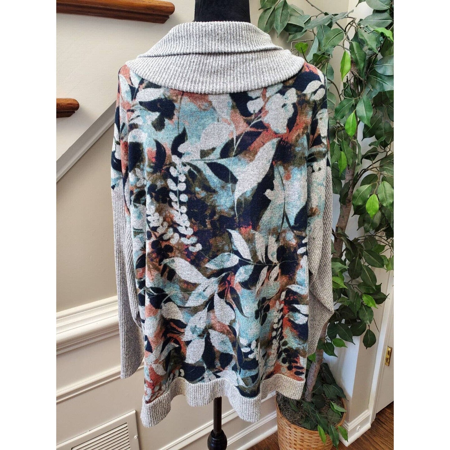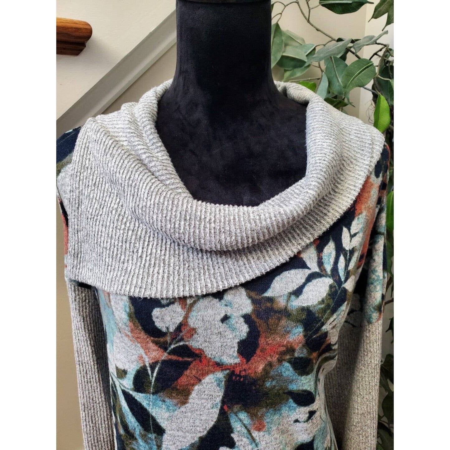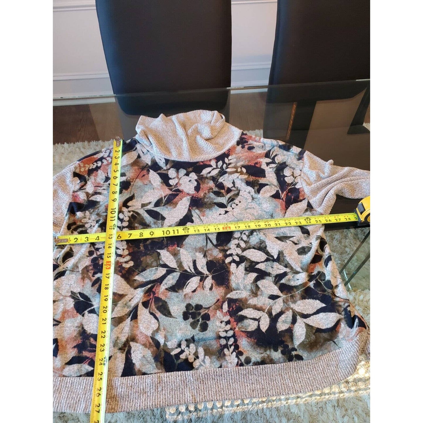 Zac & Rachel Women's Floral Polyester Cowl Neck Long Sleeve Knit Sweater Size 3X.