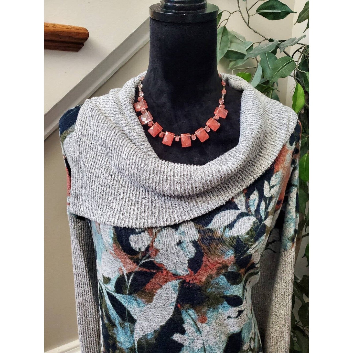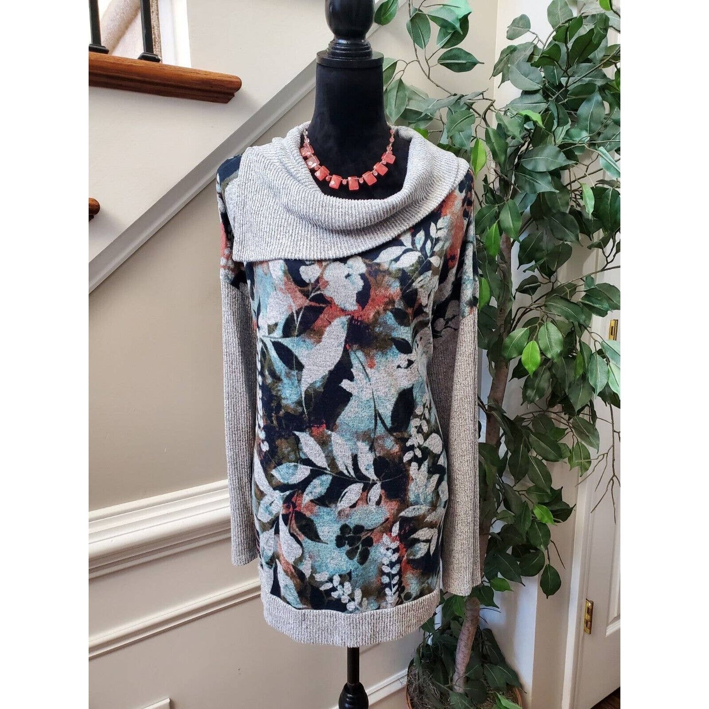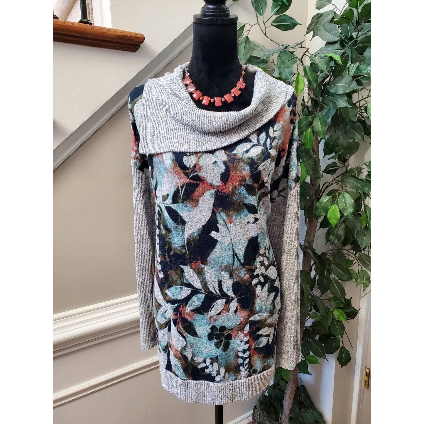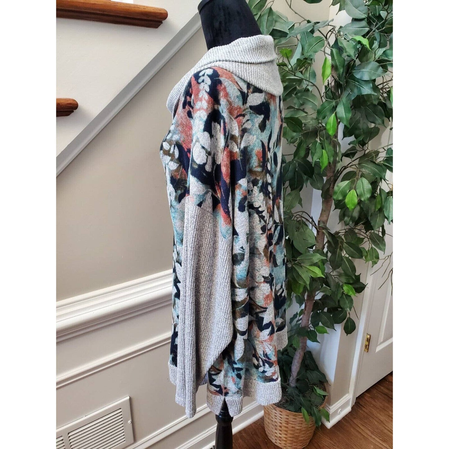 Zac & Rachel Women's Floral Polyester Cowl Neck Long Sleeve Knit Sweater Size 3X.